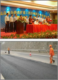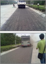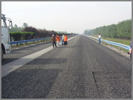 在本工程中我公司承擔了橡膠瀝青應力吸層的施工,共攤鋪橡膠瀝青應力吸收層3.5萬平方米,施工質量得到業(yè)主好評。