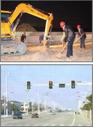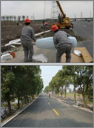 工程概述:蓮花路是合肥市經開區(qū)主干道之一,為南北走向,北起繁華大道,南至方興大道,全長約5720米。改造前為水泥混凝土路面,主車道寬22.5米,雙向6車道,改造內容為按照現(xiàn)狀對快、慢車道進行“白加黑”改造,改造后為全線雙向8車道的瀝青砼路面。本次瀝青的攤鋪材料選擇了橡膠瀝青應力吸收層,在合肥市市政道路上尚屬首次。橡膠瀝青應力吸收層具有良好的柔韌性、粘結性、防水性、較強的抗變形能力,在舊水泥混凝土路面瀝青罩面的過渡層中能起到防止和延緩裂縫產生、延長路面使用壽命的作用。我公司承擔了本項目的橡膠瀝青生產和應力吸收層的施工。 |