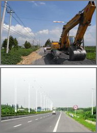 工程概述:吳江市公路改造項目包括震南新路1986m寬度7.8m和盛南線1842m寬度為7.0m。設計方案是用粒徑為9.3-13.2mm的碎石集料和橡膠瀝青攤鋪,進行1cm厚的應力吸收層施工。該項目以建設“平安公路”為目標,不斷提高農村公路的安全保障水平,為群眾出行提供安全可靠的通行環(huán)境。因地制宜加寬了部分道路,推進公交一體化,路、站、運同步發(fā)展。該項目完成后得到群眾一致的贊譽聲。